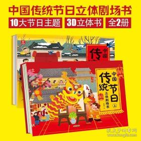 中国传统节日立体剧场书全套2册 儿童3d立体翻翻书绘本故事幼儿0-3-6岁宝宝书籍幼儿园图书籍 欢乐中国年立体书开心过大年过年啦