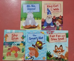 欢乐英语分级阅读故事屋:一年级:5不要啊河马,6国王卡尔的愿望,7害羞的斯坦,8漂亮帽子,11快狐狸和慢蜗牛共五本实拍图为准