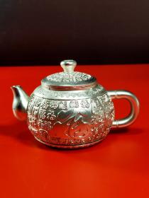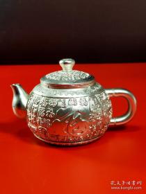 ❤银色百福茶壶(1018) 规格:123/85/76mm 重量:310g 品相如图,按图发货。