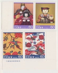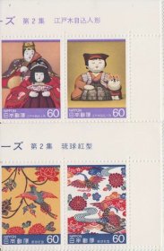 日本邮票C1018 21传统的工艺品江户人型琉球红型版头2联