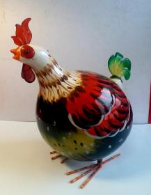 [孤品]台湾著名琉璃工房纯手工彩绘 大公鸡,鸡高28cm,前后长30cm,重1018克,彩鸡设计精美漂亮,着色吉祥喜庆,'条腿带弹簧,上下跳动,栩栩如生,着实可爱!大鸡(吉)大利,既是家庭吉祥摆件,也是馈赠属鸡的亲人朋友的佳品!!!