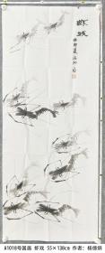 A1018号国画虾 虾戏 55×138cm 作者:杨德炯 男 1937年12月12日生 河南上蔡人 一生从事美术事业,深钻花鸟虫鱼,参加诸多画展并获奖,获“著名画家”称号。