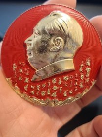毛主席像章 自编号1018(庆贺武汉人民战胜了1954年的洪水,还要准备战胜今后可能发生的同样严重的洪水——湖北武汉市革命委员会)1968.10.1