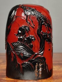 旧藏老料乌鸦皮红田黄薄意印章摆件 红田黄石透(硬)料纯手工雕刻【山径春行图】玉玺印章书房闲章摆件 錾刻名家 癸丑夏月•白石刊作 净高12厘米长8厘米宽5厘米,重1018克