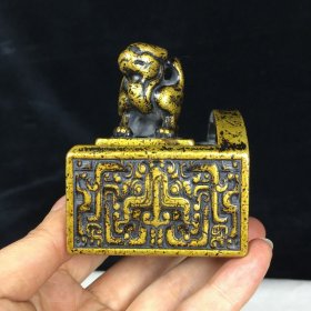旧藏收藏精品纯铜飞虎套盒双印印章方印D008207 尺寸:73mm60mm50mm 重量:1018克 包浆老气,线条流畅,收藏佳品!实物更漂亮!