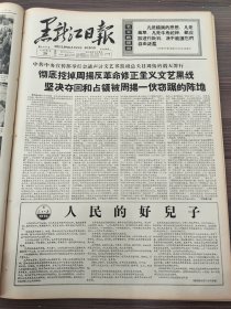 黑龙江日报1966年7月29日中共中央宣传部举行会议声讨文艺界黑线总头目周扬的滔天罪行我国亿万人民学习刘英俊英雄事迹全国人民代表大会代表战斗英雄刘英俊生前所在团副团长陈昌荣克山县西河公社东升大队郭淑清战士尚根成佳木斯市永安小学刘秀霞工人王永安高金华
