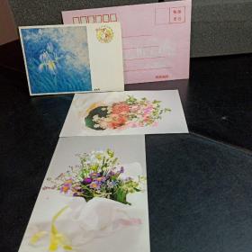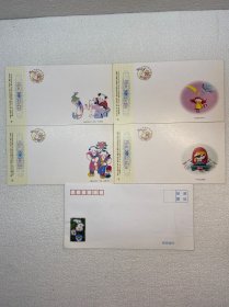 中国邮政贺年有奖明信片 4张合售+信封一个 九五品