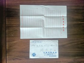 上海中医学院信封一个、信笺纸2张,实物拍照。
