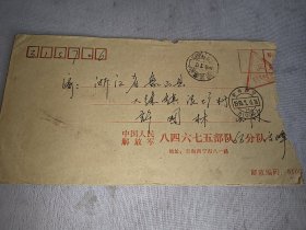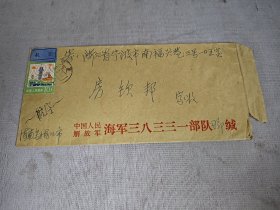 1987年(浙江岱山寄浙江慈溪)实寄信封一个。义务兵免费邮戳