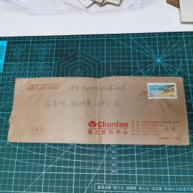 实寄封信封一个:有一个邮戳图案 江西遂川 云溪宝塔 建于1554年