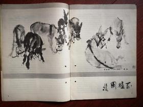 彩铜版美术插页(单张)杨秀峰介绍及其国画八幅《林泉贤士》《牧鹅图》《群驴图》《布袋和尚图》等,孙其峰国画四幅《双鸭图《山鸡图》《竹石图》及书法作品,白伯华白庚延介绍及其国画作品《观音像》《大河旭日》