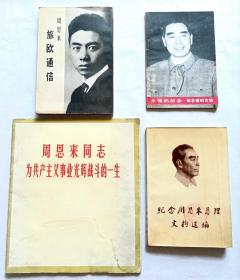 红色历史文献:《纪念周总理文物选编、旅欧通信、光辉战斗的一生》4本合售(1979年人民日报出版社、1978年文物出版社、1978年中国少年儿童出版社、1977年山东人民出版社出版,其中3本里面全是老图片).。
