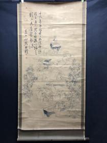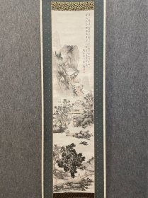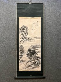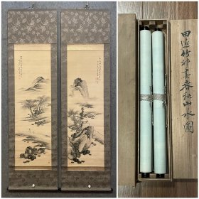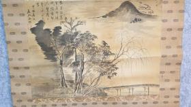 【田能村直入】小虎 古笔山水图 名称:老字画【古笔山水图】老作品, 画家:小虎 材质:纸本绫裱立轴,双木盒 规格:23*29(画心尺寸cm) 38*131(整体尺寸cm) 品相:如图 老旧,黄斑,褶皱