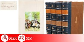 【签名本】1885年豪华英文版《 歌德选集》5卷全, 真皮装帧, 三面刷金,竹节书脊, 版画近千幅, 相完美,净重13公斤/歌德 /歌德选集/ Works of Goethe