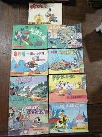 卡通连环画选 火山挖掘机、罗普乞丐生涯、马戏团的风波、唐老鸭撒不拉伊刀、米老鼠乌龟岛的秘密、小鹰历险记、罗普就业记、果菲铠甲手套、骑士唐老鸭合售9册