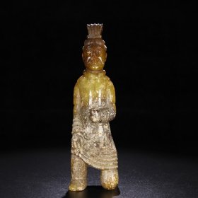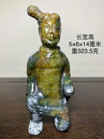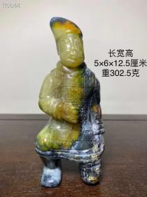 和田玉 秦兵马俑 此藏品包浆皮壳神韵自然,沁色入骨,玉质通透温柔,雕工技艺精湛,刀法娴熟传神,线条流畅形神兼备 ,整体器形大传神韵味十足!