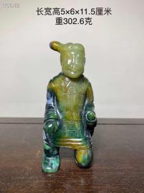 200_和田玉 秦兵马俑 此藏品包浆皮壳神韵自然,沁色入骨,玉质通透温柔,雕工技艺精湛,刀法娴熟传神,线条流畅形神兼备 ,整体器形大传神韵味十足!