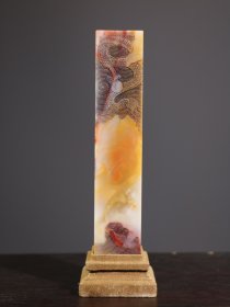 珍藏精品田黄荔枝冻精雕【云龙】老闲章摆件 金龙 生肖龙 气韵生动,寓意吉祥 石质天然 油润通透 萝卜丝纹清晰细腻。甲午秋八月六日·蒋仁 作 净高18厘米长3.8厘米宽3.8厘米净重625克
