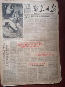 新华日报1958年8月5日套红(大跃进、大炼钢铁)毛主席和赫鲁晓夫照片,吴江盛南乡连续放出三颗“卫星”早稻亩产跃过6千斤、南汇又有六颗高产卫星上天盐仓乡东海六社亩产4638斤、中心乡姚桥社亩产5040斤、黄路乡友谊社亩产5155斤、惠中乡金星社亩产5584斤、下沙乡坦直社亩产5931斤等,惠东社早稻亩产2640斤,宿迁四千农民造轴承,农民诗人周以才,南京机关大辩论拔白旗插红旗,俞士梅朱旭刻纸