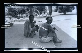 民国街头抽烟休息的苦力原版胶片底片一张。13.8X8.5厘米。泛银。附民国原装纸袋。拥有底片,一般即拥有版权。
