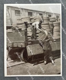 1920年代 大连码头正在装卸豆粕的苦力 民国印刷品画片一枚