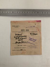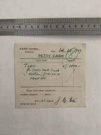 民国|“苦力小费”上海国际饭店.零用现金单1949(带签名)