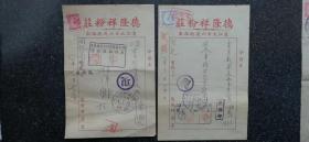 食品专题-----伪满州国票证单据------昭和13年/康德5年(1939)明治制果哈尔滨贩卖所"凤梨罐头/白玉球糖“出荷案内/发货票 (税票2张)