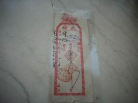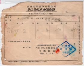 食品专题-----伪满州国票证单据------昭和13年/康德5年(1939)明治制果哈尔滨贩卖所"凤梨罐头/白玉球糖“出荷案内/发货票 (税票2张)