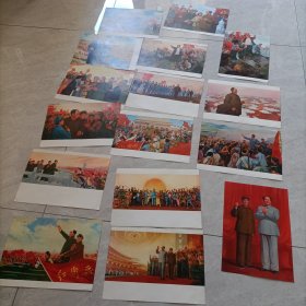 少见毛主席和林彪美术宣传画片一组16张(除了两张没有林,剩下14张都有林彪)。尺寸是16开的。26.2X18.5厘米。品相保存不错,包老包真。