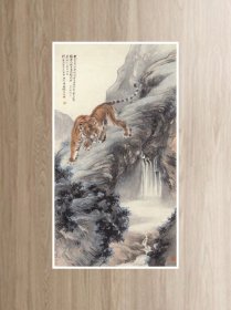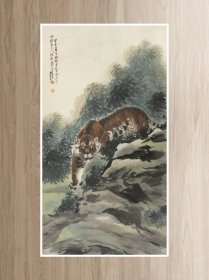 宣纸画 张善孖 林岩虎啸图50x91厘米 高清仿真复制名家字画