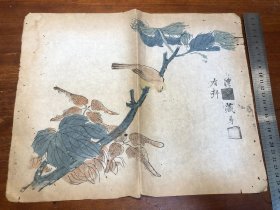 08清代刻本“多色套印”《十竹斋书画谱》存一张 芥子园画传 青在堂画谱 中国刻本 多色套印 老纸老书古书残叶残页残书标本可用作古籍版本留真谱 中国水墨画 少见