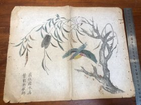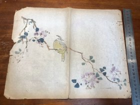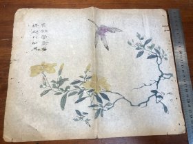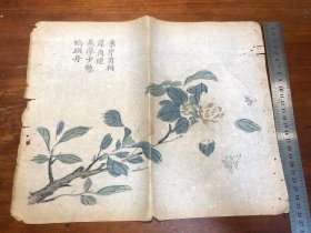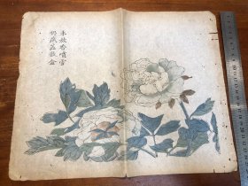 09清代刻本“多色套印”《十竹斋书画谱》存一张 芥子园画传 青在堂画谱 中国刻本 多色套印 老纸老书古书残叶残页残书标本可用作古籍版本留真谱 中国水墨画 少见