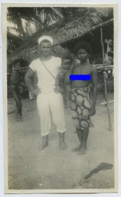 民国亚洲舰队的水兵和亚洲土著妇女合影老照片。10.8X6.6厘米, 泛银。