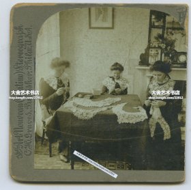清末民国立体照片--欧洲妇女手工制作蕾丝花边。布朗兄弟图库存档,半张立体照片。(完整影像)