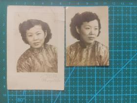 老照片:民国时期美艺照相馆人物照2张 烫发旗袍妇女 (编号71512统装)