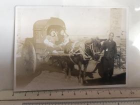 民国时期民俗赶马车的车夫马车内坐着怀抱婴儿的妇女原版老照片