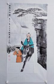 中央美术学院硕士,当代优秀潜质画家闫畅青四尺整纸人物国画《雪霁出行图》一幅,尺寸:138*70
