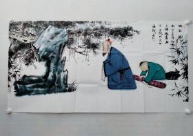 中央美术学院硕士,当代优秀潜质画家闫畅青四尺整纸国画人物《拜石图》一幅,尺寸:70*138