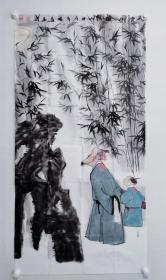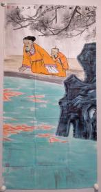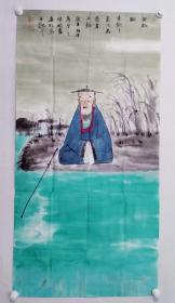 中央美术学院硕士,当代优秀潜质画家闫畅青四尺整纸人物国画《垂钓图》一幅,尺寸:137*69