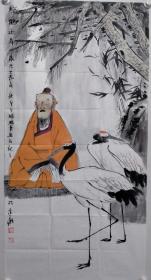 中央美术学院硕士,当代优秀潜质画家闫畅青四尺整纸人物《松鹤延年》一幅,尺寸:138*69,纸本画心