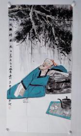 中央美术学院硕士,当代优秀潜质画家闫畅青四尺整纸人物国画《松荫酒醉图》一幅,尺寸:138*70