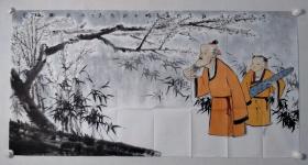 中央美术学院硕士,当代优秀潜质画家闫畅青四尺整纸人物《会友图》尺寸:69*138