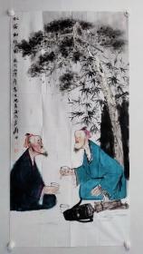 中央美术学院硕士,当代优秀潜质画家闫畅青四尺整纸人物国画《松荫对饮图》一幅,尺寸:137*69
