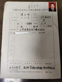 中国当代优秀书画家 傅玉坤 中国文化艺术人才库计算机输入登记表 书画类 带照片