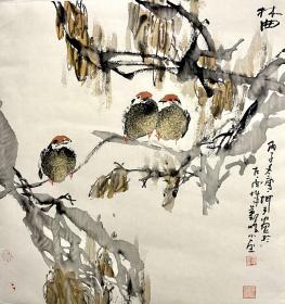 保真书画,齐派优秀画家,傅石霜国画佳作一幅,原装裱镜心,尺寸34.5×35.5cm。