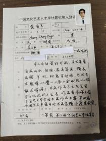 中国当代优秀书画家 黄宗平 中国文化艺术人才库计算机输入登记表 带照片