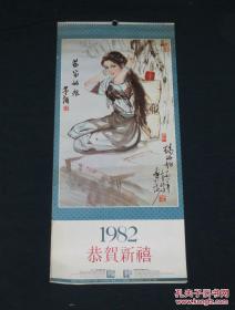 (怀旧收藏、生日挂历)一九八三年/1983年刘旦宅水墨人物专辑挂历)【人美出版 (40.5X28.8cm)封面+12个月/全13页 1982年1版1印 看图见描述】
