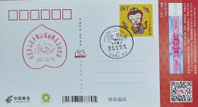 2016猴年恭贺新禧有奖片,盖2015年12月19日北京房山长沟太平猴山风景戳和北京房山太平猴山临时邮局启动纪念戳。