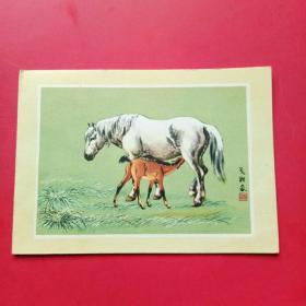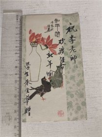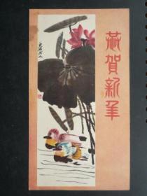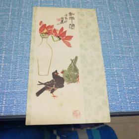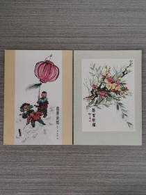 1957年 彩色贺年卡 齐白石作品《恭贺新禧》1957年初版印刷