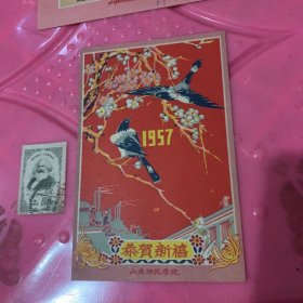 山东师范学院~恭贺新禧贺卡1957年